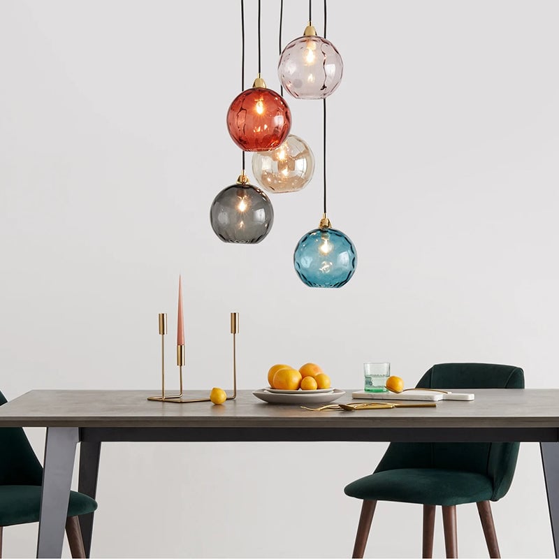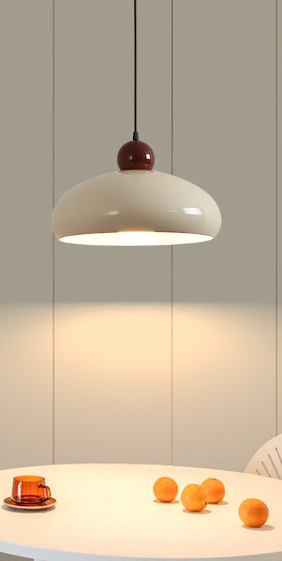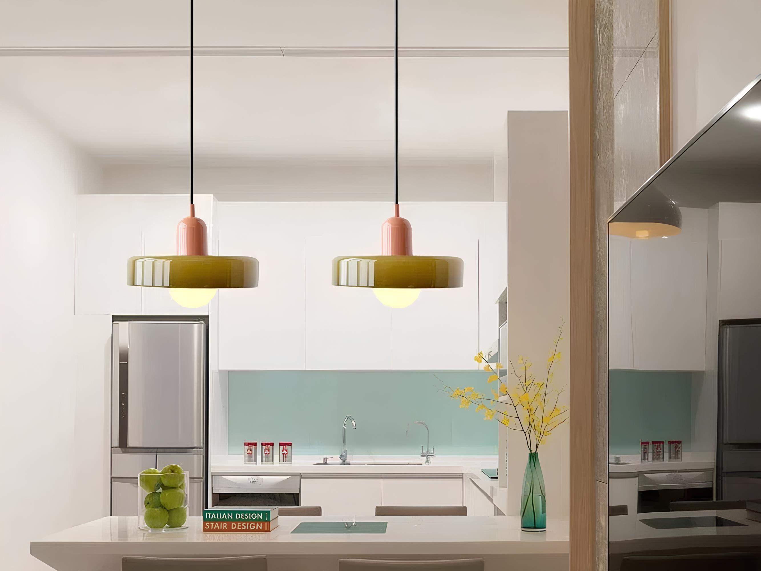 The Morandi Glass Disc Orb Pendant Lamp combining a flying saucer silhouette with vivid contrasting colors, this chandelier creates a bold visual impact.